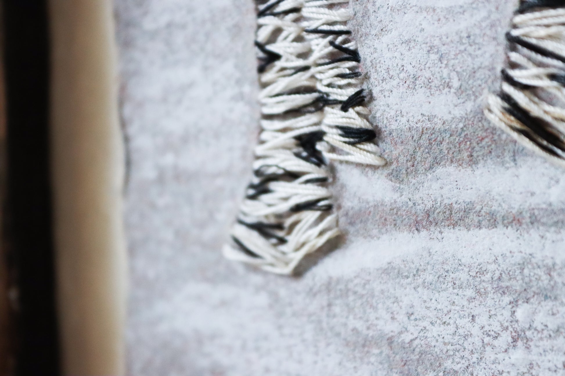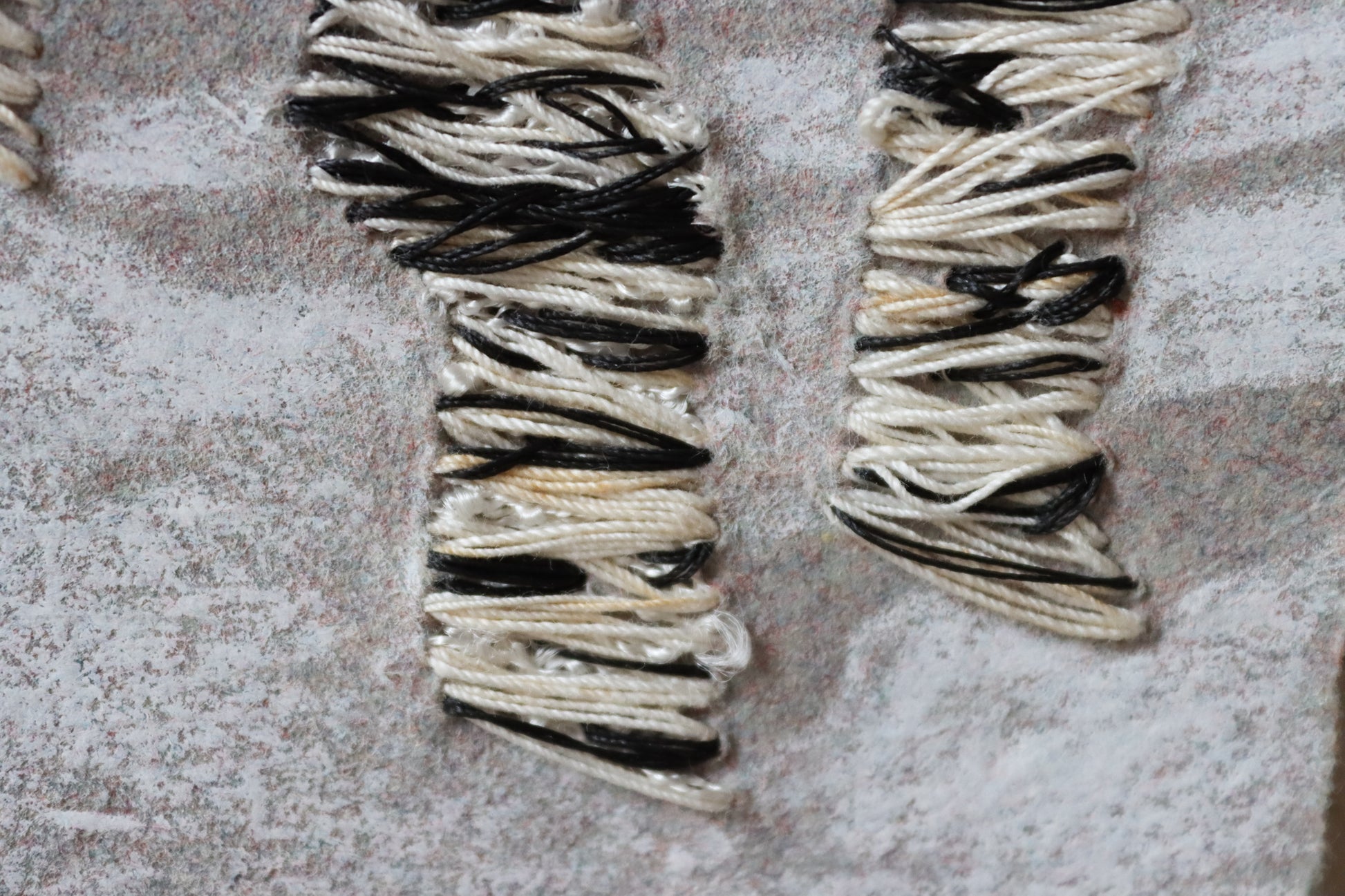 Original artwork, by Melanie Brauner, embroidered on artist-made paper in a cabin in a snowy forest by the Skykomish River, Washington, in 2024.