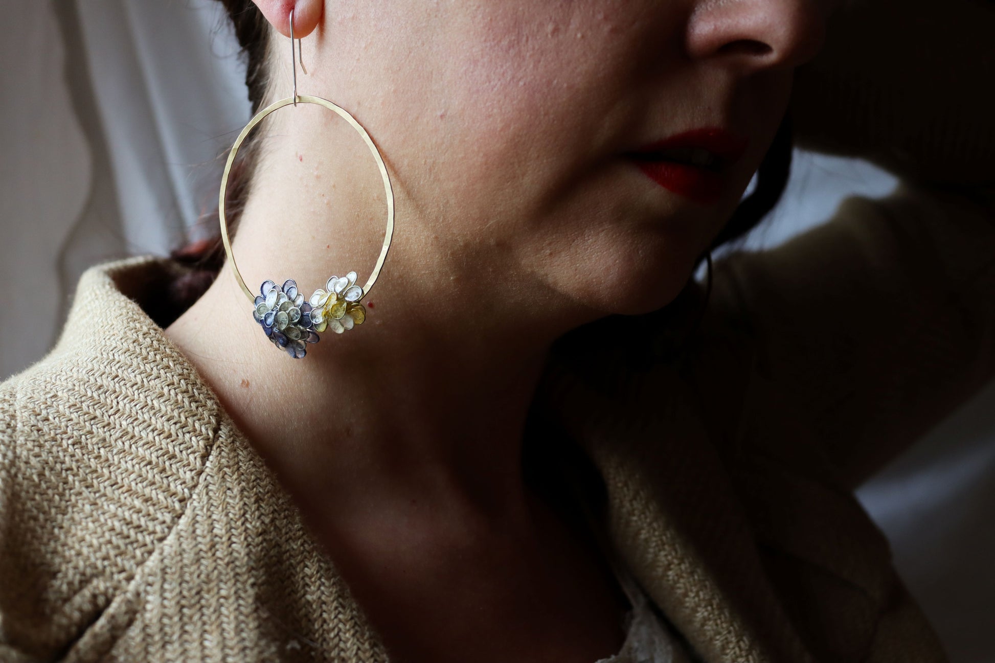 Hand-forged circles made from brass and coated in lacquer to preserve the shine.