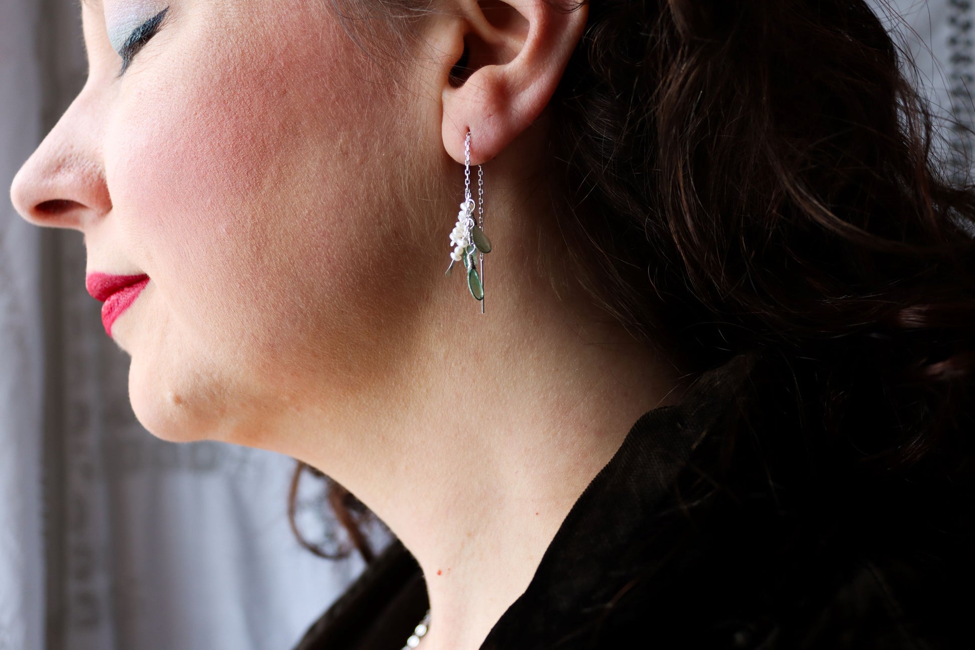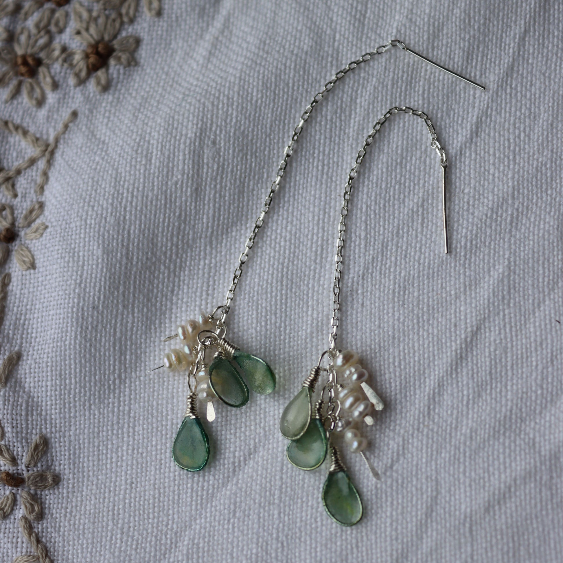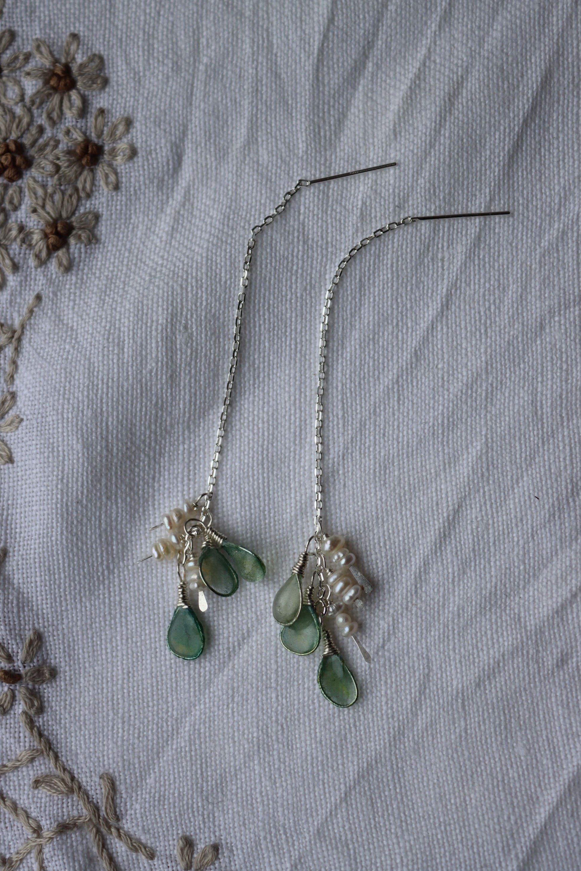 Pearls & Sea Glass Threaders : sterling silver