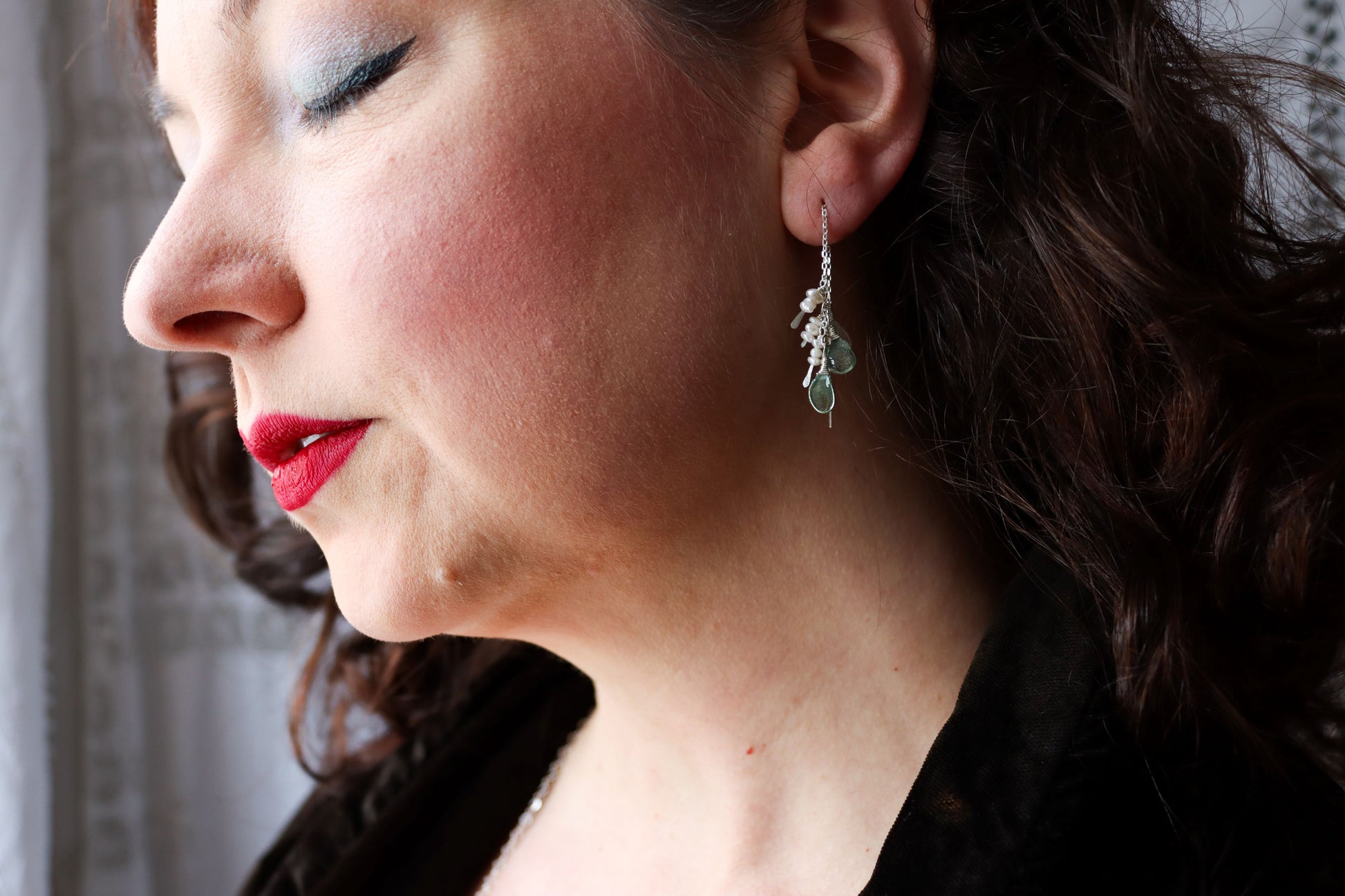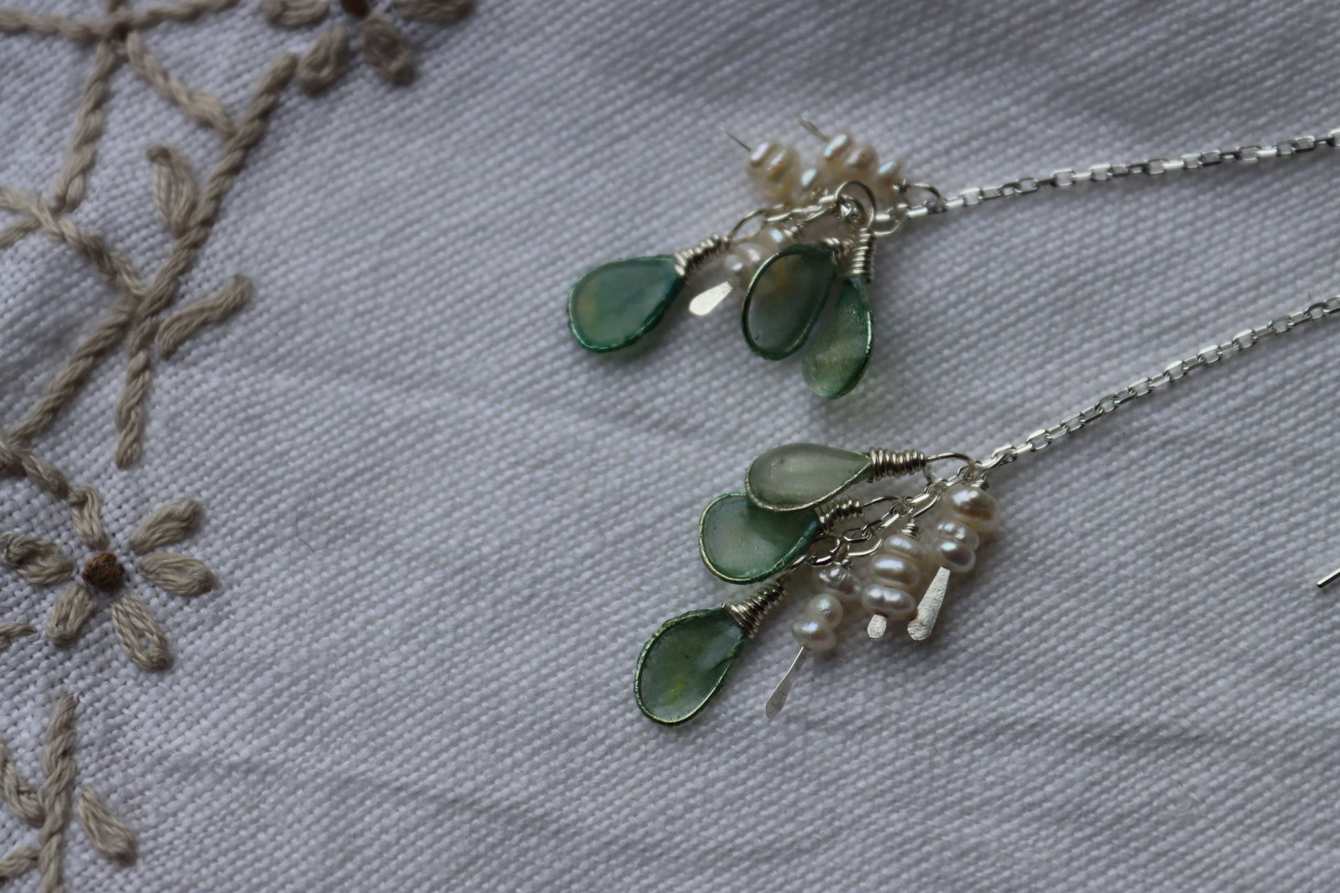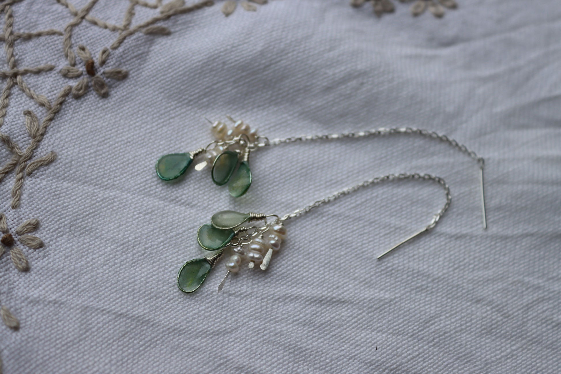 Pearls & Sea Glass Threaders : sterling silver